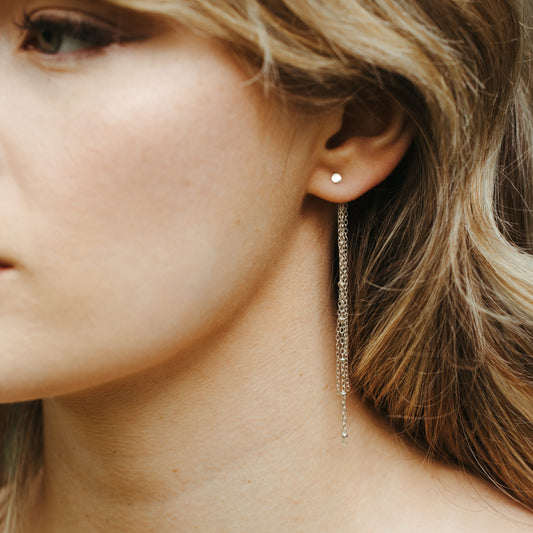 Tiny Studs with Chain Ear Jacket in 14k Gold Fill or Sterling Silver