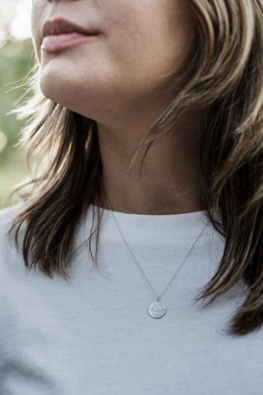 Tiny Full Moon Necklace in Sterling Silver or Gold Vermeil