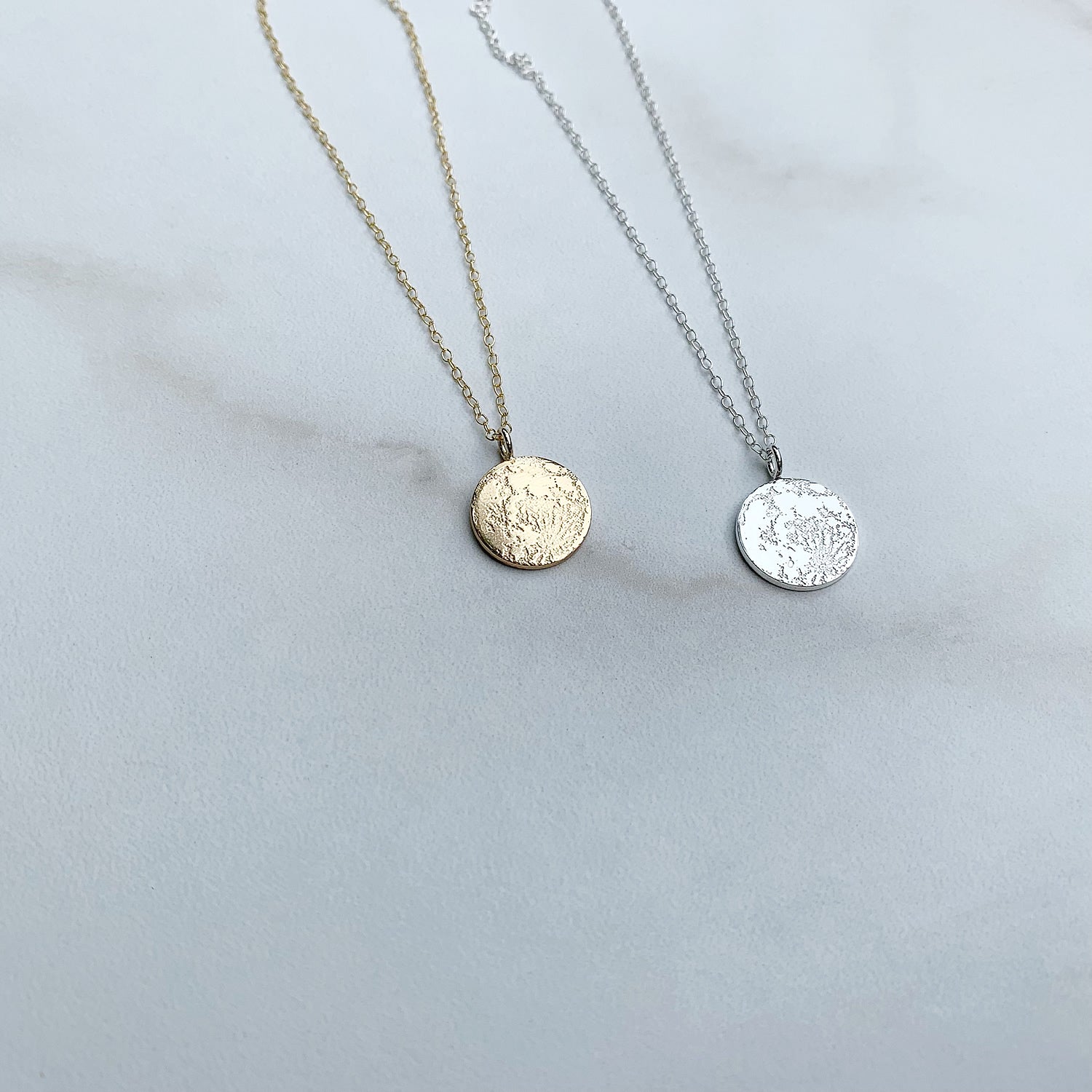 Tiny Full Moon Necklace in Sterling Silver or Gold Vermeil